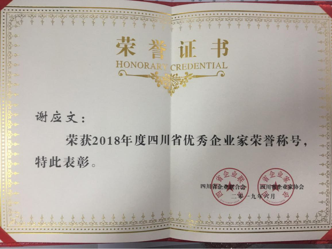 集團(tuán)黨委書記、董事長(zhǎng)、總裁謝應(yīng)文榮獲“四川省優(yōu)秀企業(yè)家”稱號(hào)
