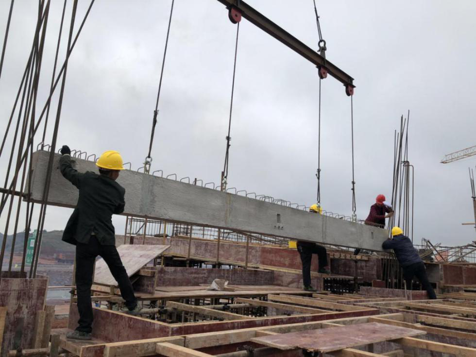 入冬的湖南,降溫快、日照少,加上懷芷高速服務(wù)區(qū)處于下風(fēng)口,吊裝人員頂著入骨的寒風(fēng)在技術(shù)員的引領(lǐng)下精準(zhǔn)將預(yù)制梁板組裝到位,隨著現(xiàn)場陣陣掌聲,懷芷房建項(xiàng)目首件預(yù)制梁吊裝成功。為接下來的裝配工作開了好頭,奠定了良好的技術(shù)基礎(chǔ)。
